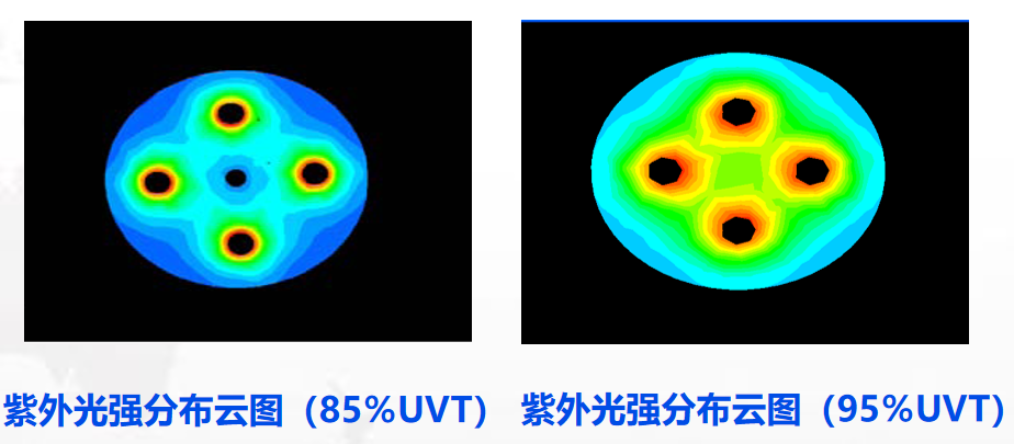 ![]() | CFD(Computational Fluid Dynamics计算流体动力学)模拟: 优化反应器内部流速及紫外强度分布,使得紫外光均匀照射至整个反应器内部。避免反应器内短流、紫外光强度分布不均等情况。 |